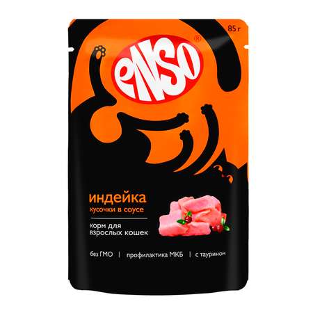 Корм влажный полнорационный ENSO для взрослых кошек с индейкой пауч 85г