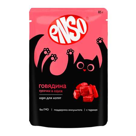 Корм влажный полнорационный для котят ENSO с говядиной пауч 85г