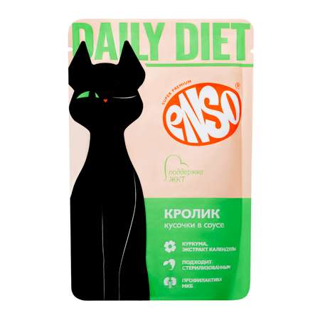ENSO DAILY DIET Полнорационный влажный профилактический корм для взрослых кошек для поддержания здоровья ЖКТ, кусочки с кроликом в соусе.