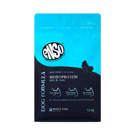 Корм сухой для взрослых собак ENSO Dog Monoprotein мелких и миниатюрных пород с белой рыбой 1.5кг
