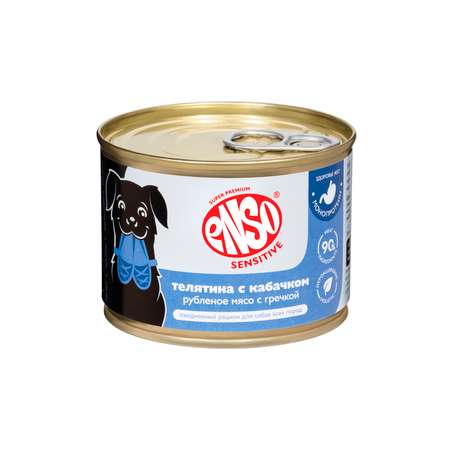 ENSO SENSITIVE Полнорационный влажный корм для поддержания здоровья ЖКТ взрослых собак телятина с кабачком. Монопротеин. Рубленое мясо с гречкой.