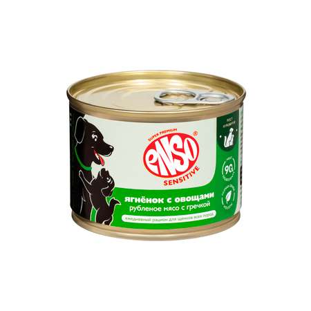 Цена Корм для щенков ENSO Sensitive всех пород ягненок с гречкой и овощами банка 190г - 292 ₽.