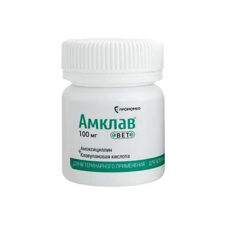 Цена Таблетки Амклав вет для приема внутрь 100мг №10 - 465 ₽.