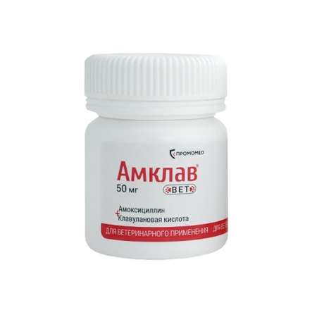 Цена Таблетки Амклав вет для приема внутрь 50мг №10 - 354 ₽.