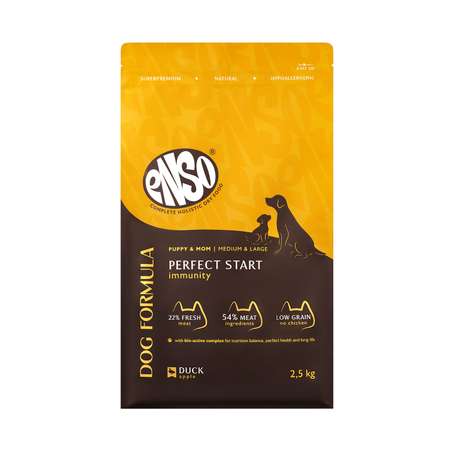 Корм сухой корм для щенков ENSO Dog Perfect start средних и крупных пород с уткой с яблоком 2.5кг