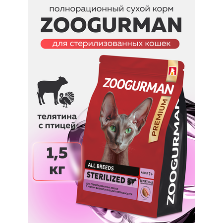 Корм сухой Зоогурман RED с телятиной и домашней птицей 1,5 кг