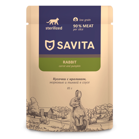 Корм для стерилизованных кошек SAVITA с кроликом и овощами в соусе 85г