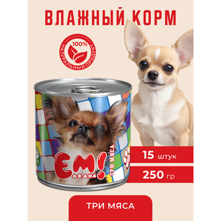 Влажный корм для собак Ем До Дна Три мяса 15 шт х 250 г