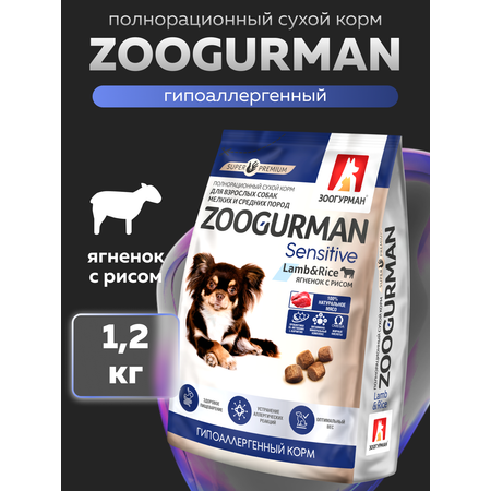Полнорационный гипоаллергенный сухой корм ЗООГУРМАН ягнёнок с рисом специально разработан для собак малых и средних пород и для собак, склонных к аллергии и с чувствительным желудком.