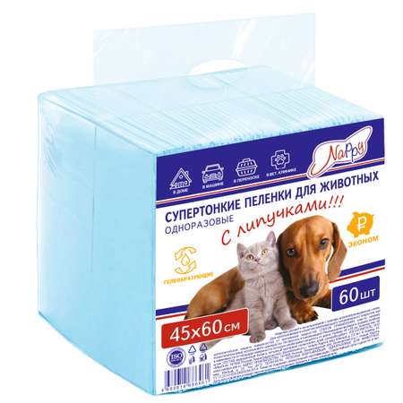 Пеленки одноразовые гигиенические с липучками NAPPY для животных 45х60 см 60 шт.