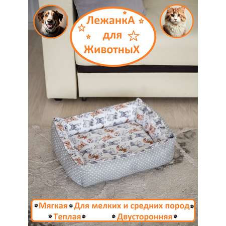 Лежанка для домашних животных 55х45х15 см станет комфортным местом отдыха для вашего питомца. Лежак подойдет как кошкам, так собакам мелких пород. Лежак для животных выполнен из качественных материалов. Ткань из 100% хлопка легко очищается от шерсти домашнего любимца, а мягкий гипоаллергенный наполнитель в виде холлофайбера обеспечивает животному комфортный сон.