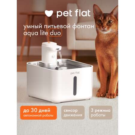 Беспроводная белая автоматическая поилка-фонтан Aqua Lite Duo от Pet Flat — это умная поилка для животных. Устройство с краником работает от аккумулятора, оснащено датчиком движения и режимом таймера, а также многоуровневым фильтром для очистки воды. Эта автоматическая поилка для кошек и собак подходит для всех пород и возрастов — от котят и щенков до взрослых кошек и собак мелких, средних и крупных пород. Большой резервуар объёмом 3.2 литра обеспечивает достаточное количество воды даже при длительном отсутствии хозяев. Подача воды осуществляется через носик с эффектом крана, что имитирует проточную воду и делает процесс питья более привлекательным для животных. Многоуровневая система фильтрации эффективно очищает воду от шерсти, пыли и других загрязнений, предотвращая проблемы с пищеварением. Бесшумная работа кошачьего фонтанчика делает устройство комфортным даже для самых пугливых котиков. В наличии два универсальных цвета на выбор — чёрный и белый, чтобы вы могли подобрать вариант, который лучше подойдёт к вашему дому. Электрический поильник для животных - это надёжное и практичное решение, которое сочетает технологии и заботу в одном устройстве.