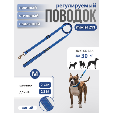 Поводок для собак с неопреновой ручкой Easy Pets 211 цвет Синий р-р M 2см 210см