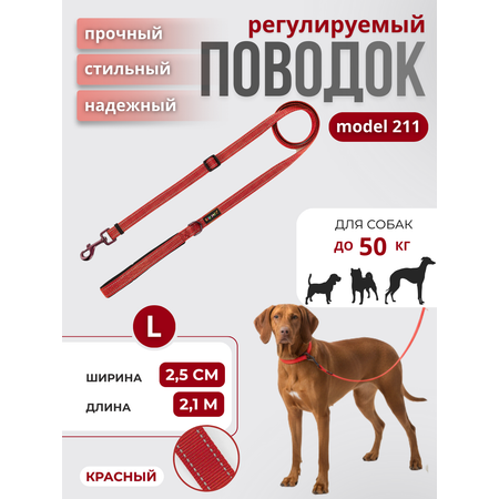 Поводок для собак с неопреновой ручкой Easy Pets 211 цвет Красный р-р L 2,5см 210см