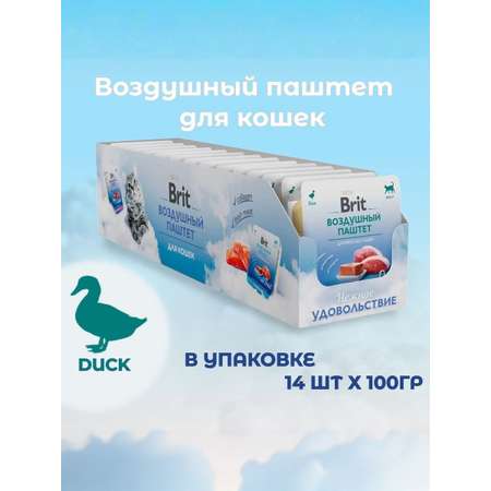 Воздушный паштет для кошек Brit с уткой 100г х 14шт.