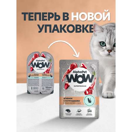 Корм для кошек AlphaPet WOW Superpremium ягненок с потрошками пауч в соусе 85г