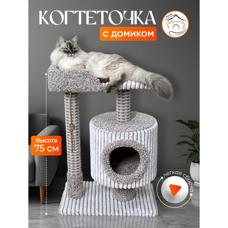 Стильная когтеточка для кошек высокая с домиком легко впишется в интерьер.