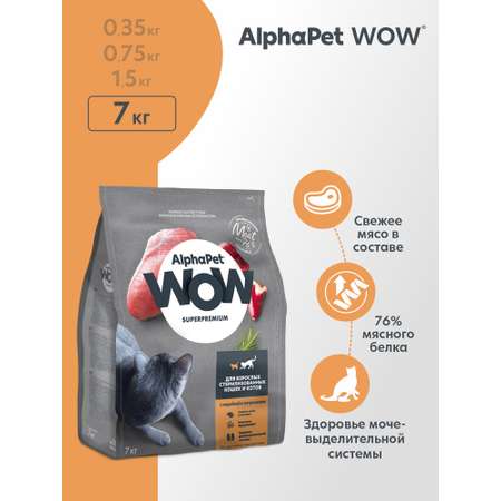 Продукт от бренда AlphaPet WOW Superpremium предназначен для взрослых стерилизованных кошек и котов. Корм для кошек сухой содержит в составе 76% мясного белка высокого качества.