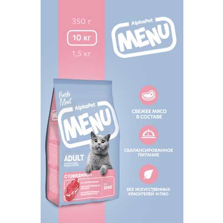 Сухой полнорационный корм холистик AlphaPet с говядиной для взрослых кошек и котов AlphaPet Menu 10кг