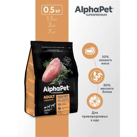 Сухой полнорационный корм AlphaPet с индейкой и рисом для взрослых собак мелких пород AlphaPet Superpremium 0,5 кг