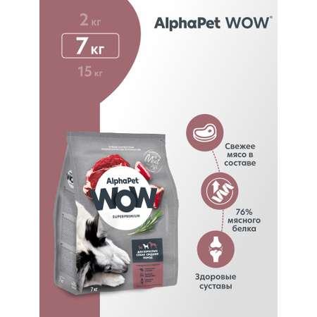 Сухой полнорационный корм AlphaPet с говядиной и сердцем для взрослых собак средних пород 7 кг