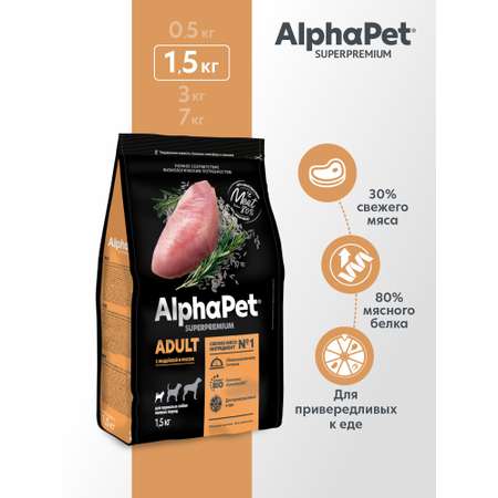 Сухой полнорационный корм AlphaPet с индейкой и рисом для взрослых собак мелких пород AlphaPet Superpremium 1,5 кг