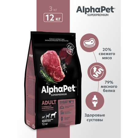 Цена Сухой полнорационный корм холистик AlphaPet с говядиной и потрошками для взрослых собак крупных пород 12 кг - 10935 ₽.