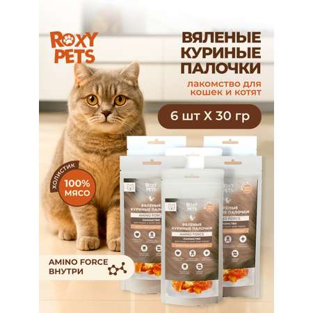 Лакомства для кошек и котят всех пород ROXY PETS из вяленого куриного филе, 6 шт