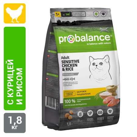 Цена Корм сухой ProBalance Sensitive для кошек с чувствительным пищеварением с курицей и рисом - 1400 ₽.