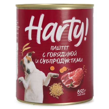 Корм для собак всех пород Harty консервированный полнорационный паштет с говядиной и субпродуктами 850г
