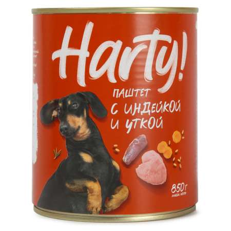 Корм для собак всех пород Harty консервированный полнорационный паштет с индейкой и уткой 850г