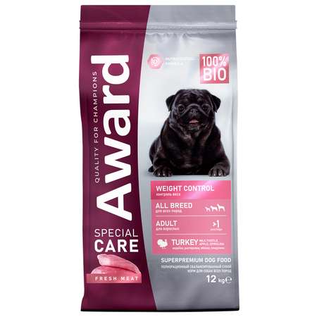Корм для взрослых собак всех пород AWARD Special Care Weight Control для контроля веса со свежим мясом индейки сухой 12кг